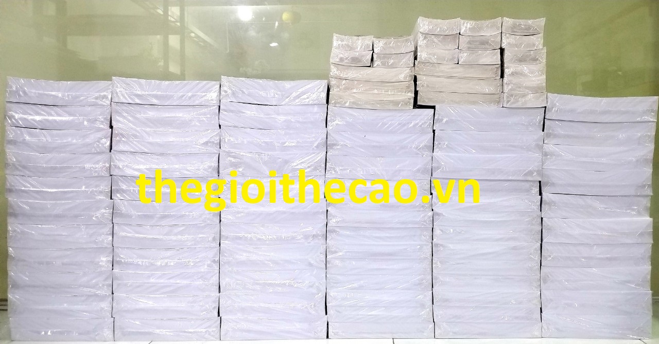 Nhãn decal in mã vạch dạng tờ và dạng xếp zigzag chuẩn bị đóng thùng giao cho khách hàng. Xưởng sản xuất decal Công ty TNHH TM DV Chấn Trần.