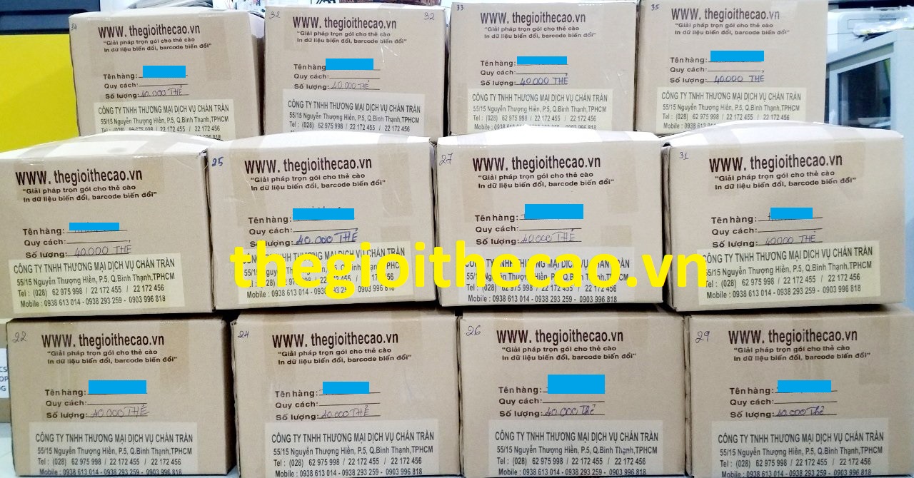Thẻ cào khuyến mãi và trúng thưởng, đóng thùng carton và chờ giao cho khách tại xưởng thế giới thẻ cào.